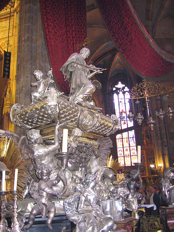 Barokowy sarkofag z relikwiami św. Jana Nepomucena z Katedry św. Wita na Hradczanach w Pradze.