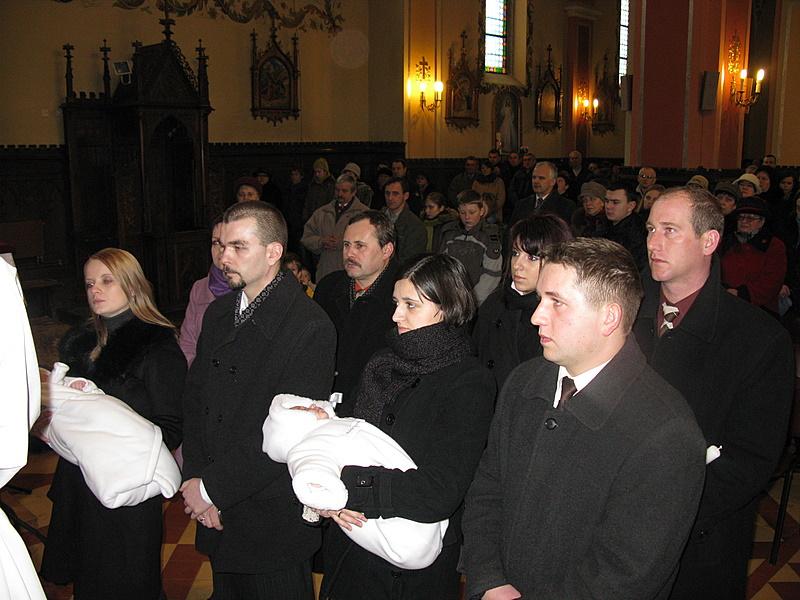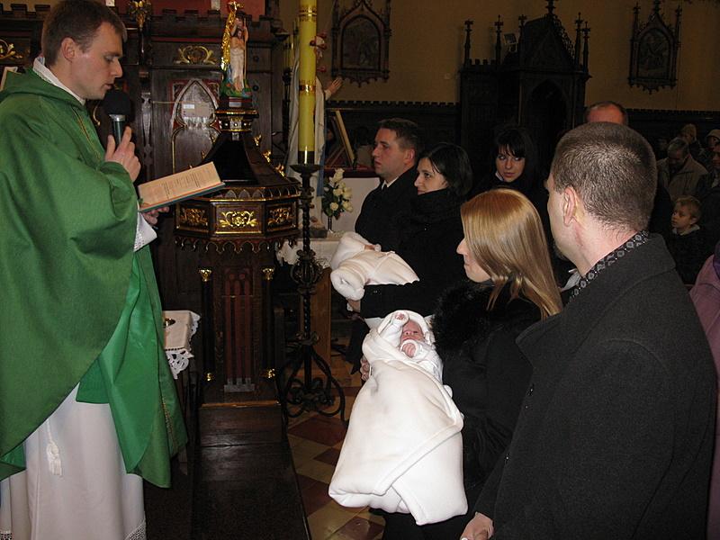 W niedzielę, 14 lutego, w której poranek przywitał nas obfitymi opadami śniegu, w naszym kościele parafialnym przy nowej chrzcielnicy jako pierwsi zostali ochrzczeni: Franciszek Jan Bargiel s. Łukasza i Magdaleny z ul. Południowej 245, oraz Milena Maria Rudy c. Bartłomieja i Emilii z ul. Kasztanowej 13. Szafarzem sakramentu był ks. katecheta Bartłomiej Dudek.
