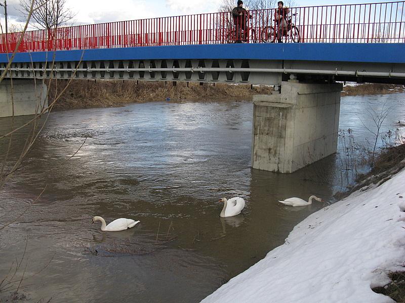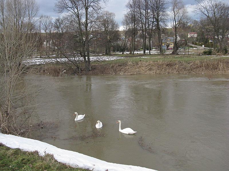 Końcem lutego pojawiły się w okolicy ul. Mostowej trzy łabędzie, budząc wśród mieszkańców naszej miejscowości niemałą sensację. Jak dotąd łabędzie dokarmiane przez dzieci i starszych czują się u nas dobrze. Nie wiadomo czy to ich odpoczynek w dalszej podróży, czy mają zamiar na dłużej zagościć u nas ?